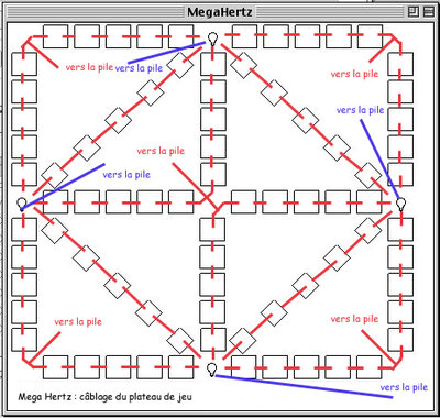 Le dessin du plateau de jeu est représenté sur la figure 1, les lampes sont figurées par des cercles, les cases par des rectangles. Les croix sont là pour la décoration, elles symbolisent le pôle plus de la pile.